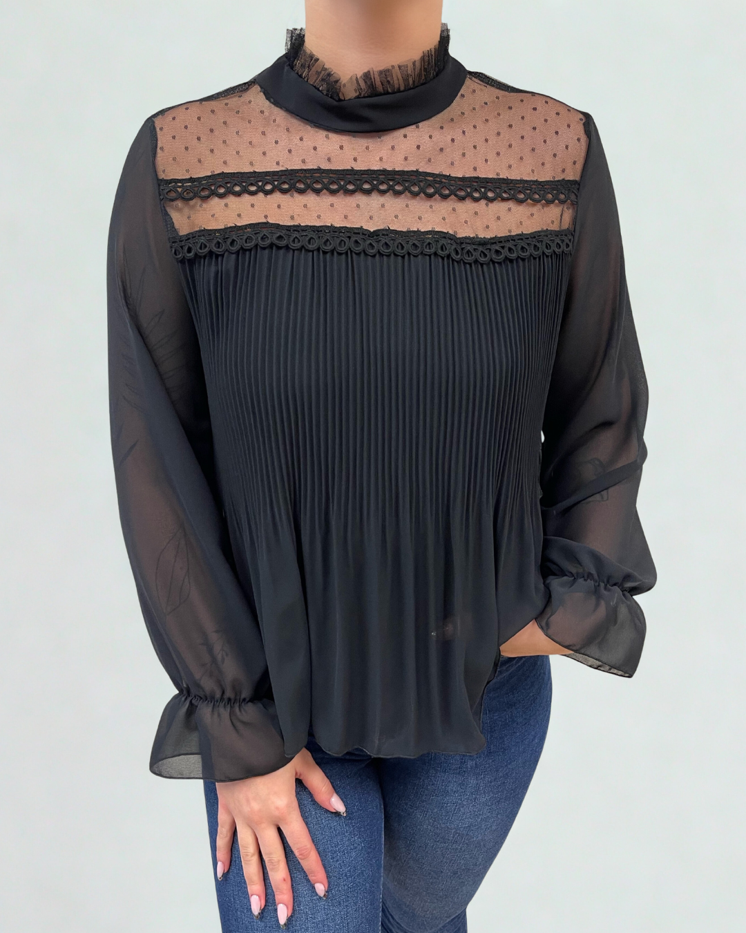 Naiste must pidulik õhuline pluusNaiste must pidulik õhuline pluus