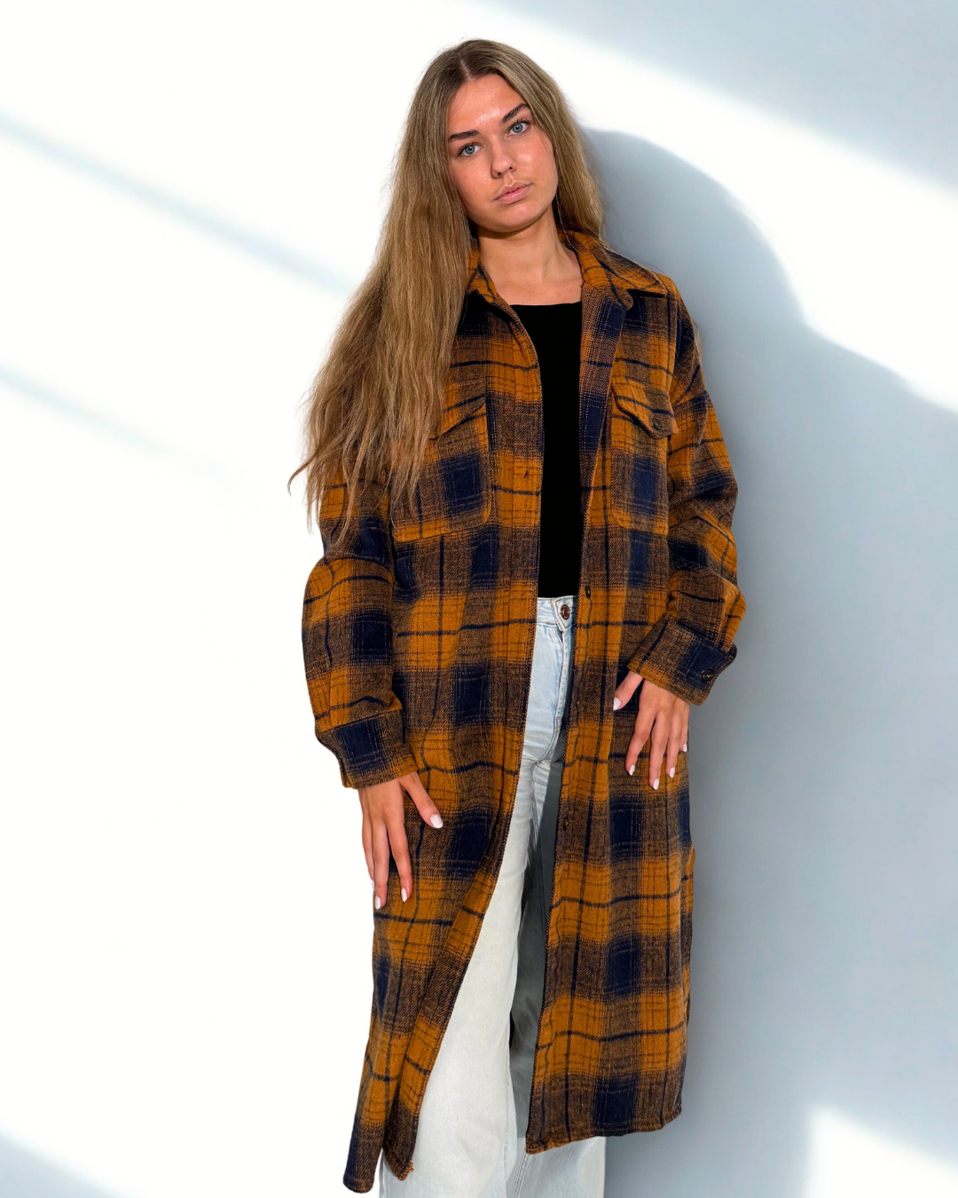Naiste pruun/sinine pikk oversize pluus/jakk